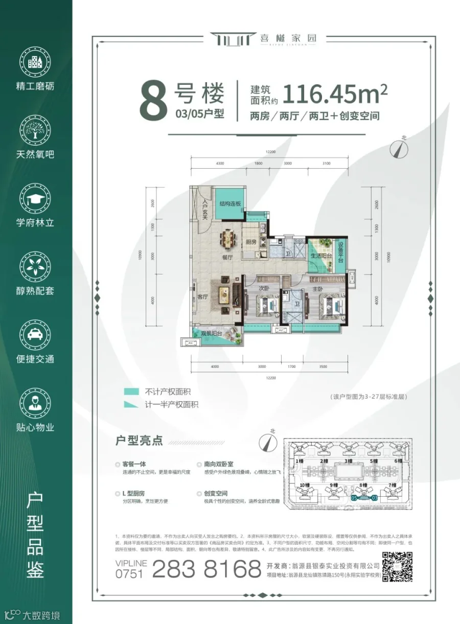 1、本宣传资料为要约邀请,相关内容不排除因政府相关规划、规定及开发商未能控制的原因而发生变化,本公司保留对宣传资料修改的权利,敬请留意最新资料。本文所述面积均为建筑面积,买卖双方的权利义务以双方签订的《商品房买卖合同》及附件等协议为准。