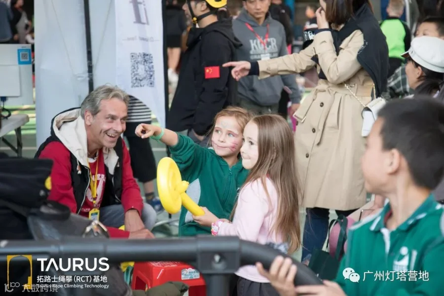 训练区的教学已经让孩子们对绳攀这项运动兴奋不已,他们的欢笑声引来了越来越多的人流汇集,不一会儿,就大排长龙啦!
