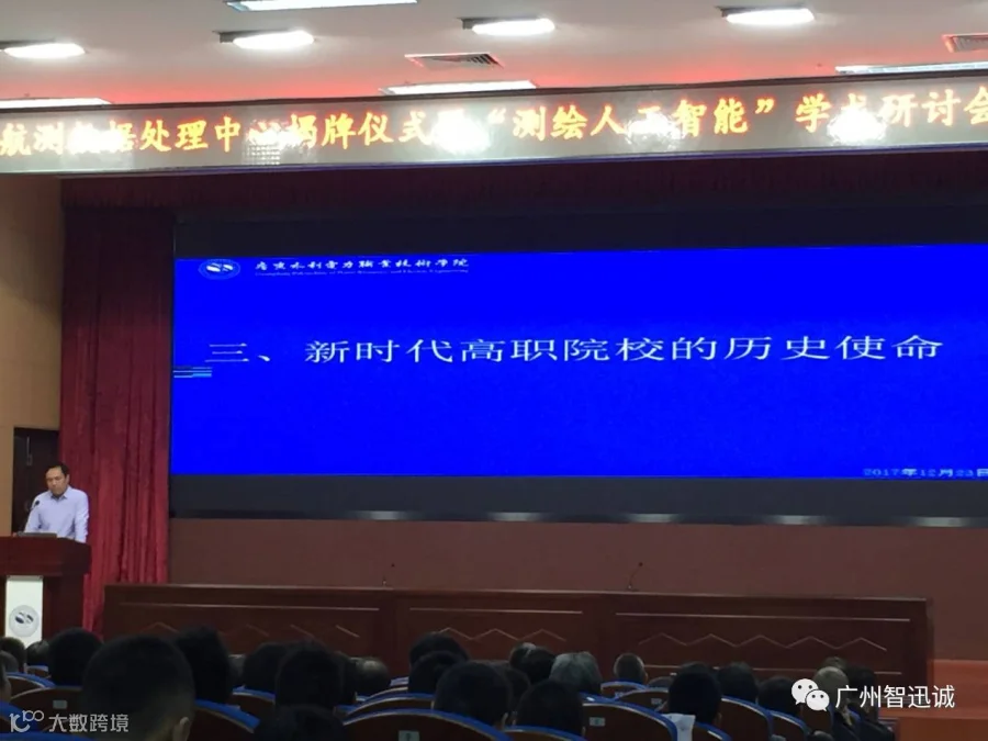 12月23日,广东水利电力职业技术学院与广州智迅诚地理信息科技有限公司深度合作共建的“航测数据处理中心”和“地理信息新技术研发与应用中心”举行隆重的揭牌典礼,并举行了“测绘人工智能学术研讨会”。