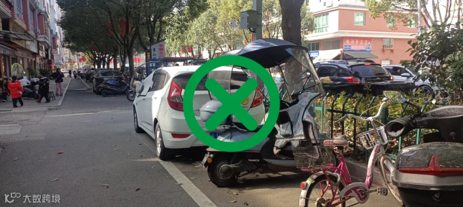 非汽车类车辆停放在非机动车泊位内,并做到 “摆整齐、朝正向”。不随意停放,不侵占交通道路。部分不具备施划非机动车停车泊位的路段,请您自觉紧靠道沿石以上区域停放,车头朝外,车身不侵占盲道和人行通道。