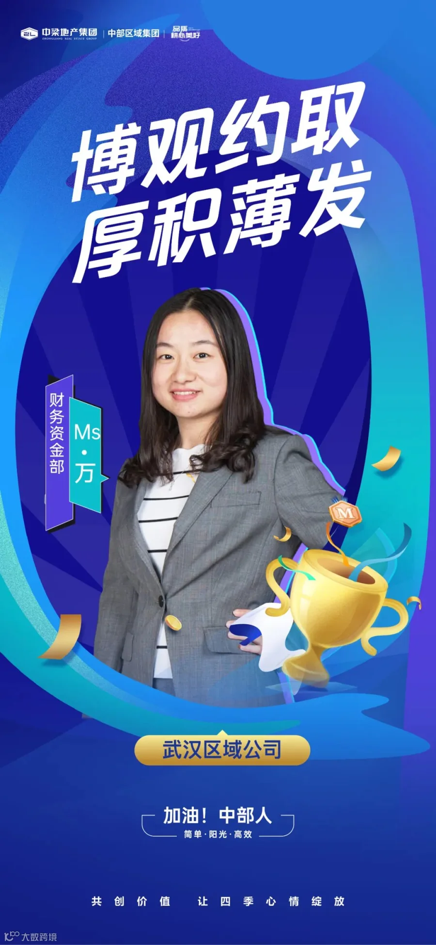 自加入中梁开始,Ms.万便快速进入角色,高效完成各项工作任务,秉承业财融合、助力经营的理念为领导决策提供数据支持及财务分析,践行契约精神确保合作方管理标准动作落地率100%,统筹区域全面预算的填报、复核及整改工作,不断夯实数据,取得了7月考核集团第六,9月考核集团第八的成绩。