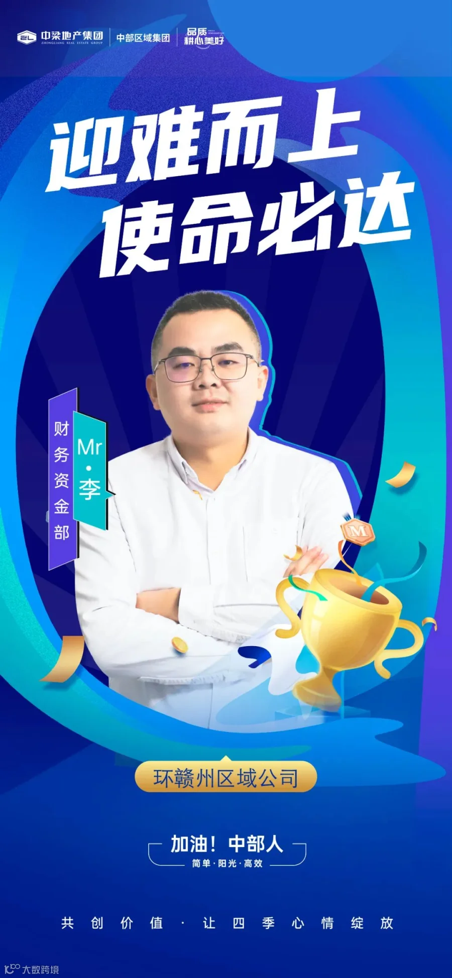 为助力业绩达成,中部大区于6月下旬开始召开指标晨会,Mr.李从开始的每天一次,到630当天每两小时更新一次指标完成情况,定时跟进并公示各类非标流程进展,推进流程的审批效率提升,最终助力中部大区630指标超额完成。进入第三季度以来,Mr.李每天早上几乎第一个到公司,完成指标数据更新及各项会前准备工作,每一次指标晨会都井然有序的召开,最终10月份中部指标超额完成并在地产各大区排名第一。风险督办工作上,总裁约谈会督办事项已全部销项,力保项目稳健运营。