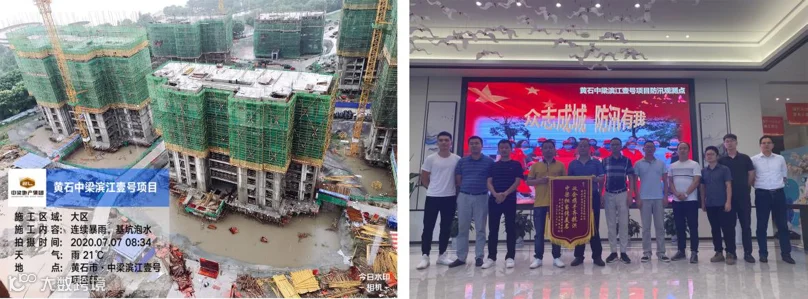 2020年7月份黄石连续多日降雨,各地不同程度遭受洪涝灾害,防汛抢险形势十分严峻。赶到黄石中梁滨江壹号项目工地的Mr.吴,撑着伞和团队开始巡查工地,了解洪涝情况。“我这边基坑全部泡水里了”“我这边材料淹了一部分”“我这边……”,一个个并不乐观的新情况从工地各方传来。风雨如磐,Mr.吴顾不上被雨打湿的衣襟鞋袜,一脚一脚踩在泥泞中,逐步交代完全事项。随后Mr.吴又急忙召集成员召开应急会议。