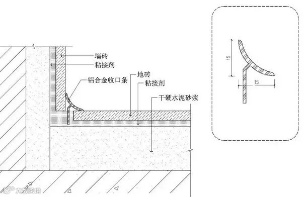 瓷砖石材自身收口方式:留缝、错缝、对撞