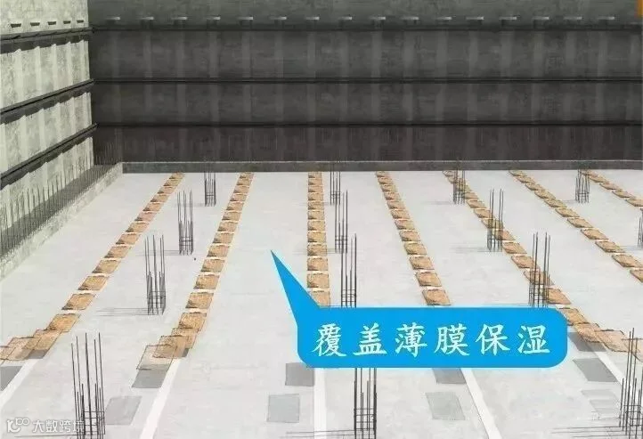 地下室外墙混凝土浇筑后带模养护不应少于2天,拆模后应采用多层保水性强的材料覆盖养护3—4天,之后继续洒水养护,有效养护总时间不得少于14天。