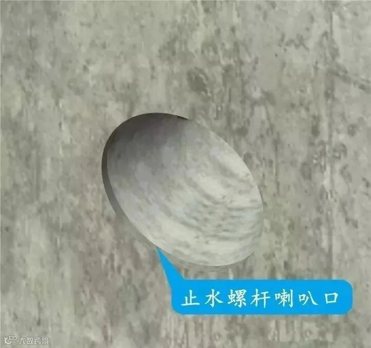 形成原因:穿墙螺杆止水环尺寸过小或未满焊或焊接不饱满,拆模过早致使螺杆周边混凝土被扰动。