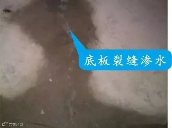 表现形式:地下室底板出现裂缝并有渗漏水现象。