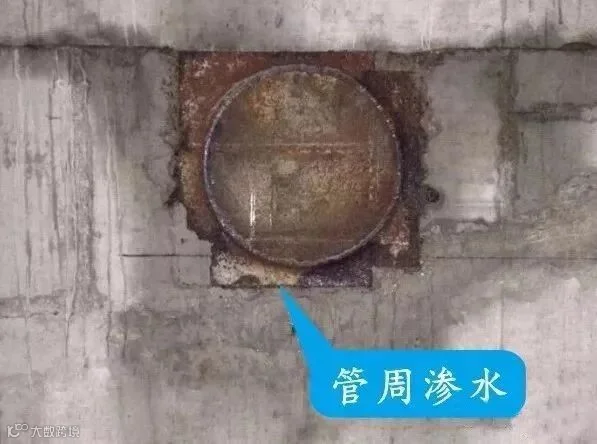 表现形式:预埋套管及直埋管道穿防水混凝土墙处有渗漏水现象。