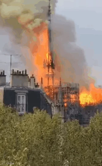 当地时间4月15日18:30左右,大火烧了起来。很快,大教堂的屋顶就保不住了。大火扫过它绝美的彩色玻璃窗,大教堂内部的木质结构也起了火。最后,大教堂的尖顶在大火中轰然倒塌。