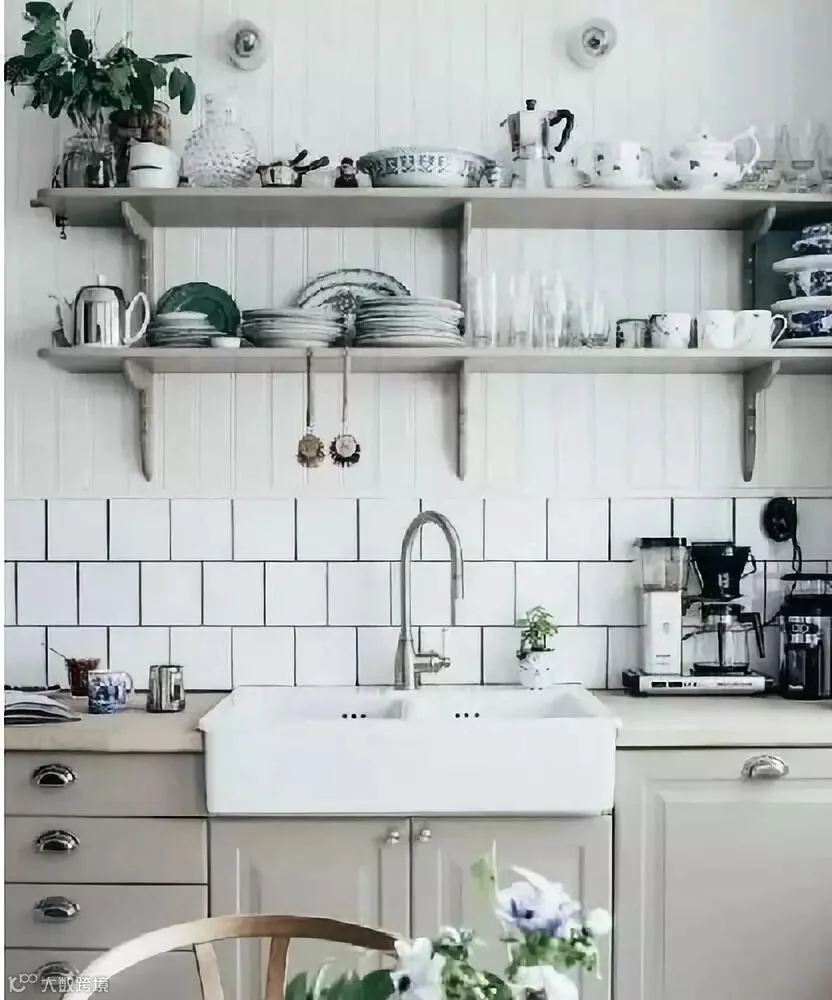 很多读者会用小白砖和花砖进行搭配,清新活泼,为空间增添了一丝动感。