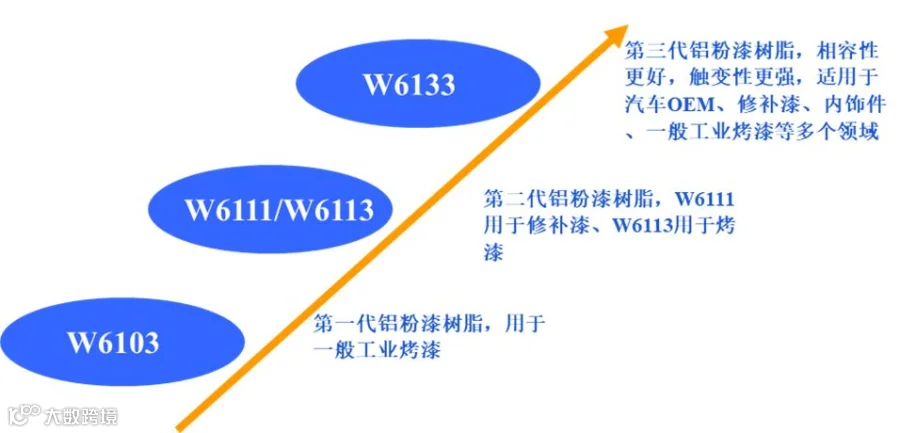 这类触变树脂开辟了一条不依靠触变剂而让体系产生触变性的闪光漆技术路线,现已被广泛应用于水性工业闪光漆中,如汽车OEM、汽车修补漆等。