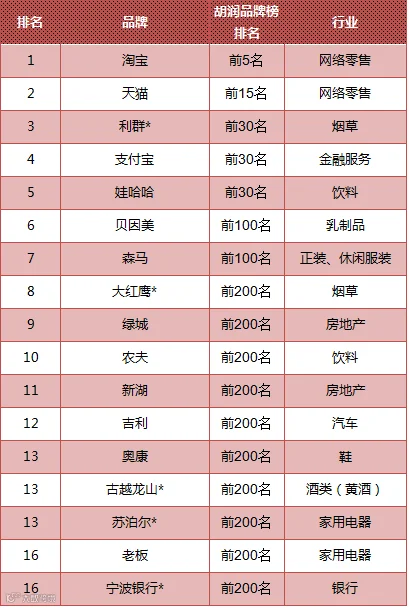 在去年前200名最具价值中国品牌的胡润品牌榜上,有17个上榜品牌总部浙江,全国排名第四,前三名是北京、广东和上海。这17个上榜品牌中,有12个是民营品牌。淘宝品牌价值1,850亿元成为浙江地区最具价值中国品牌,位列总榜第5位。
