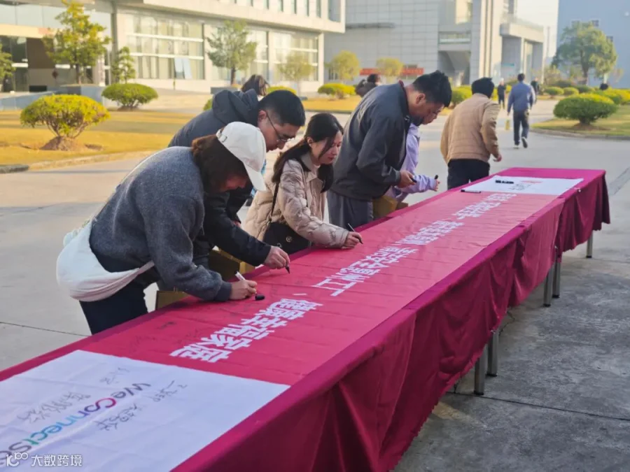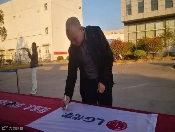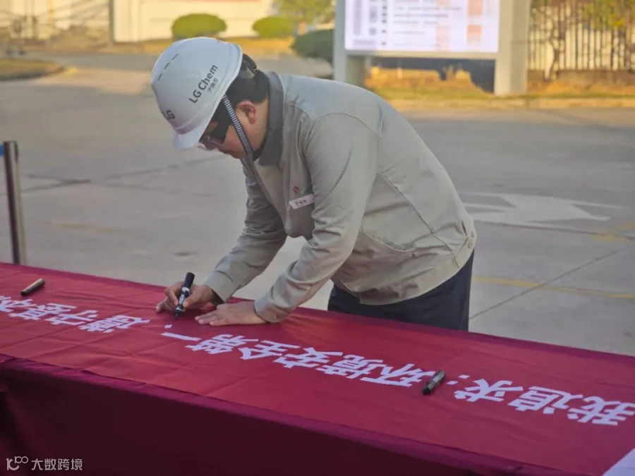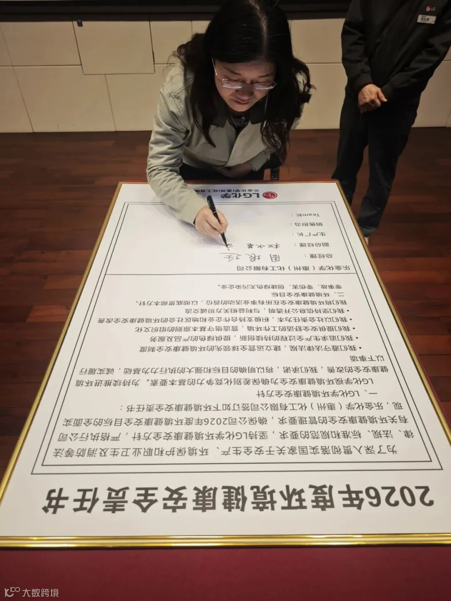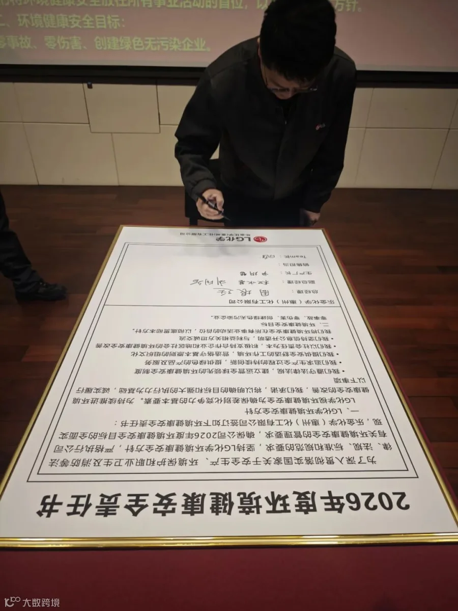 员工们在“环境安全第一, 遵守基本原则,清洁安全惠州工厂,健康幸福家庭“横幅上签字,并承诺严格遵守公司环境安全健康规定,达成2026年环境安全高度化目标。