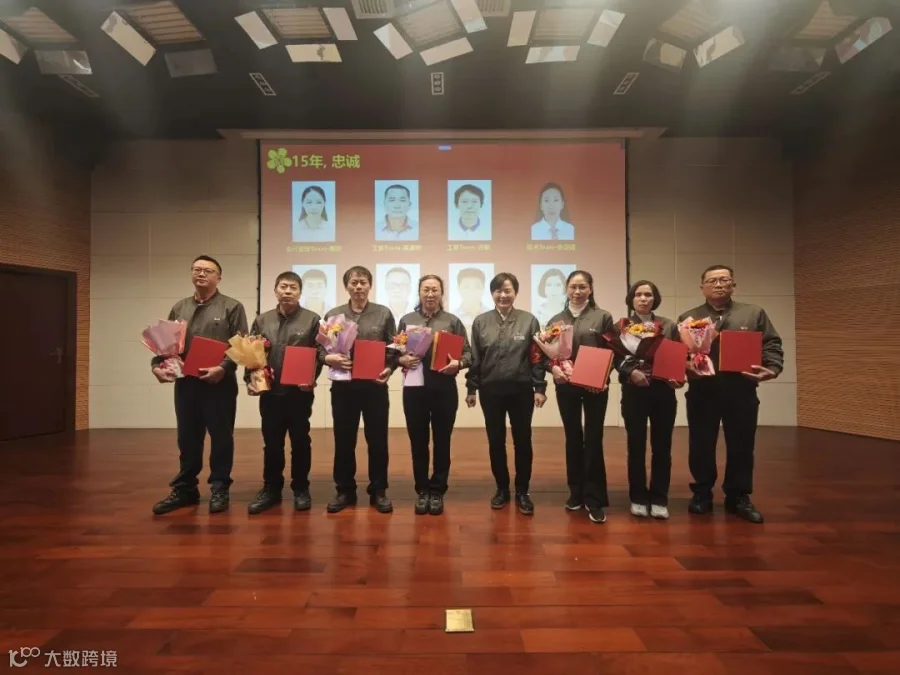 仪式上,公司对入职满5年、10年、15年员工颁发勤续奖牌及纪念品,致敬坚守,致敬长期服务。他(她)们中,有扎根一线的生产技术骨干,有开拓市场的营销销售精英,有提供支援的业务支持行家,他(她)们为公司发展做出了突出贡献。