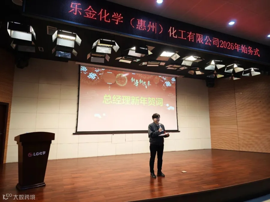 上午8:50,公司在多功能厅举行始务式,大家一起观看LG会长具光谟新年致词视频,2026年以全新的创新,创造出被顾客选择的差异化价值,以专注成就卓越。