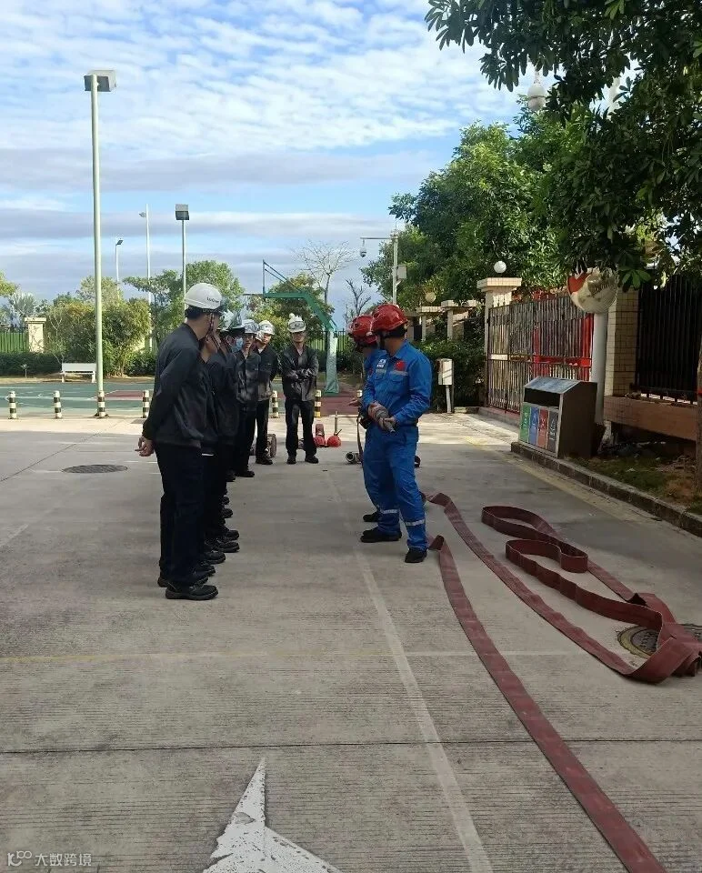 当天下午进行消防安全培训,实习生们来到了国家危险化学品应急救援基地,进行消防实操训练,在基地两位教官的悉心指导下,完成了正压式呼吸器、灭火器和消防水带的实训。训练场上,实习生们个个聚精会神听讲解,全神贯注做练习。三个小时的训练,大家不仅学会了消防器具的使用方法,团队协作性也得到了提高。