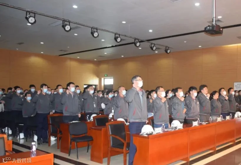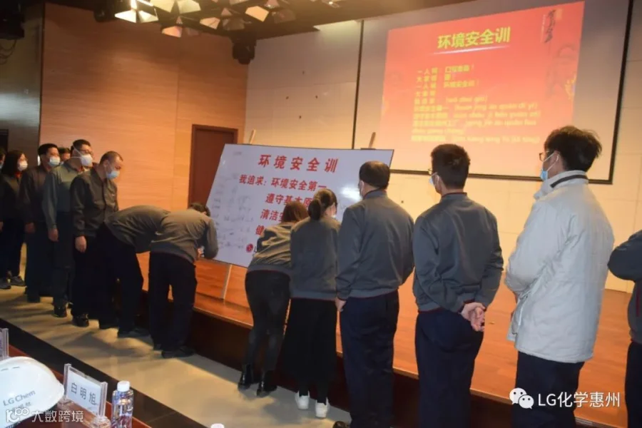 仪式最后,全体员工宣读环境安全训并在安全承诺板上签字,承诺2021年践行环境安全训,守住安全红线。