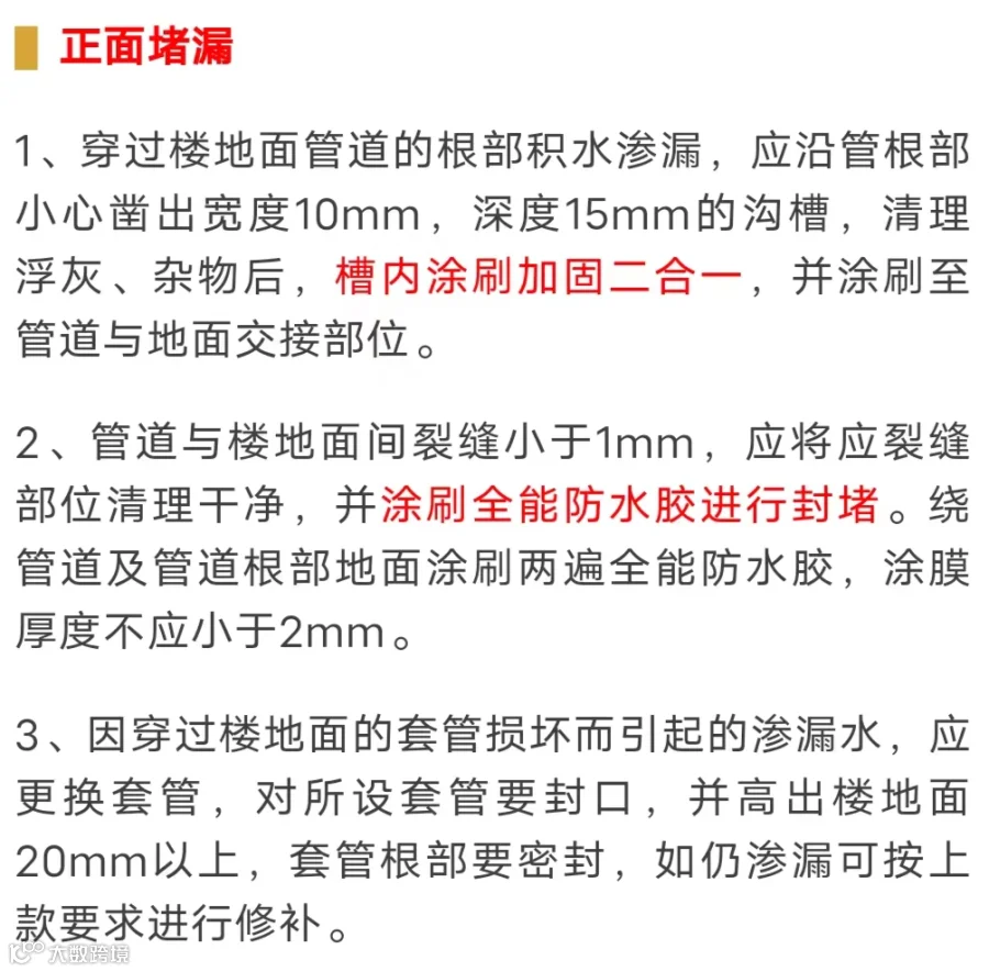 穿墙(板)管根或地漏口渗漏是我们家庭装修中常见的问题,由于连接着两个区域,一旦发生漏水就很容易引起邻里纠纷,劳神费力伤感情。
