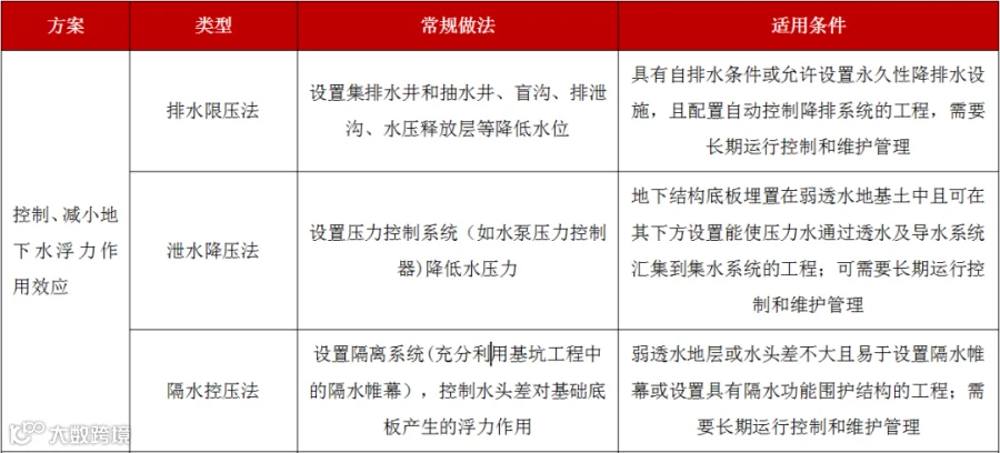 ① “压”,即采用回填材料或依靠结构自重来平衡地下水浮力;