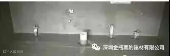 在管根、管道、阴阳角、施工缝等易发生漏水的部位应增强处理。在管根、管道周围凿开采用瞬间堵漏剂进行封堵,然后再用毛刷涂刷一至两遍防水涂料;阴阳角、施工缝部位采用聚酯布增强处理后用刮板刮涂一遍防水涂料,聚酯布宽度为300mm。