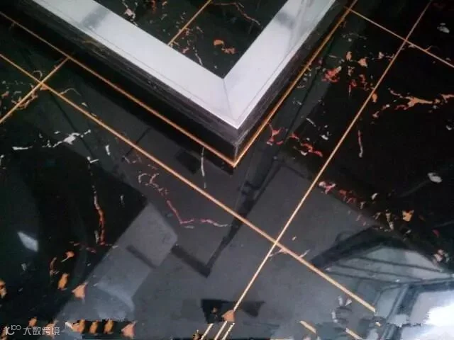 效果:视觉冲击力强,很浮夸,很耀眼!这样的组合在日常美缝中用的比较少,主要是很多业主接受不了,大多数家居风格也不适合,但是一些风格如:新古典、后现代、浮夸风等,就需要这种对比很强烈的地面效果来装饰空间氛围了!