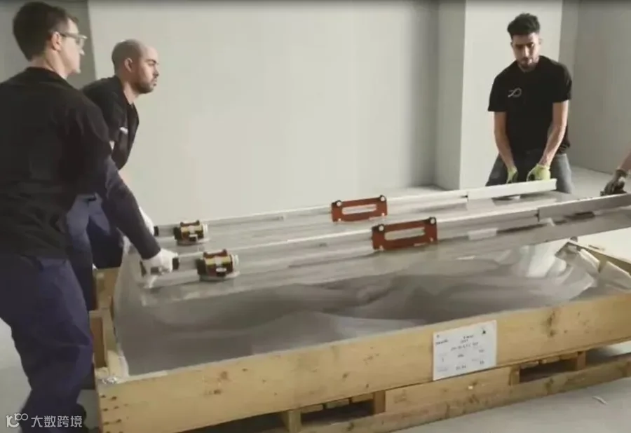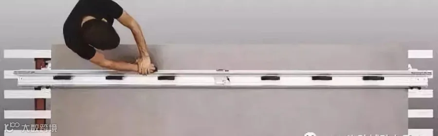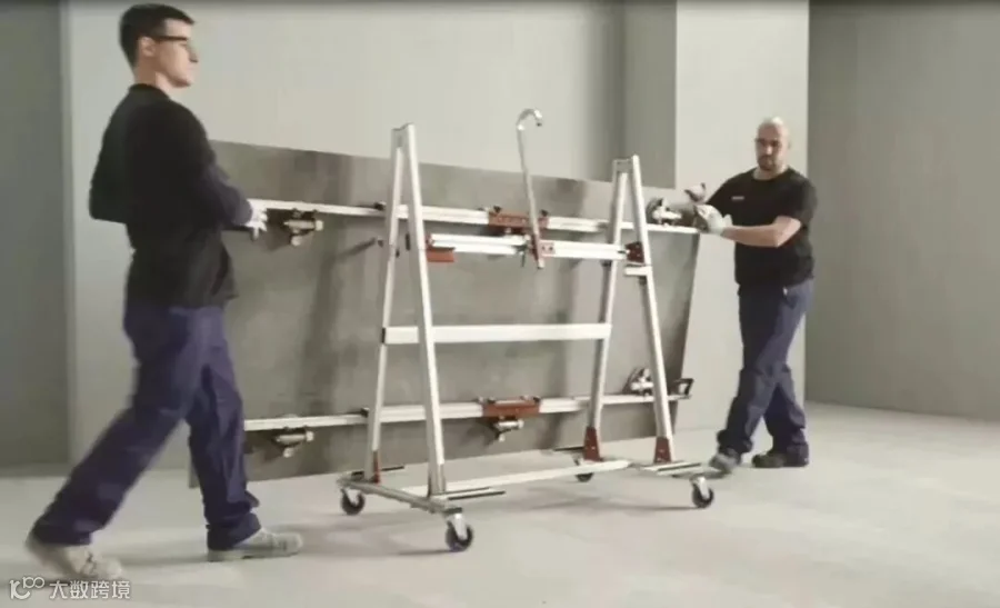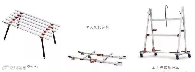 带有吸盘的井字形搬运架,吸盘可以牢牢吸住大板,防止脱落,并且减少人员数量。更大的尺寸需要用移动架来搬运。