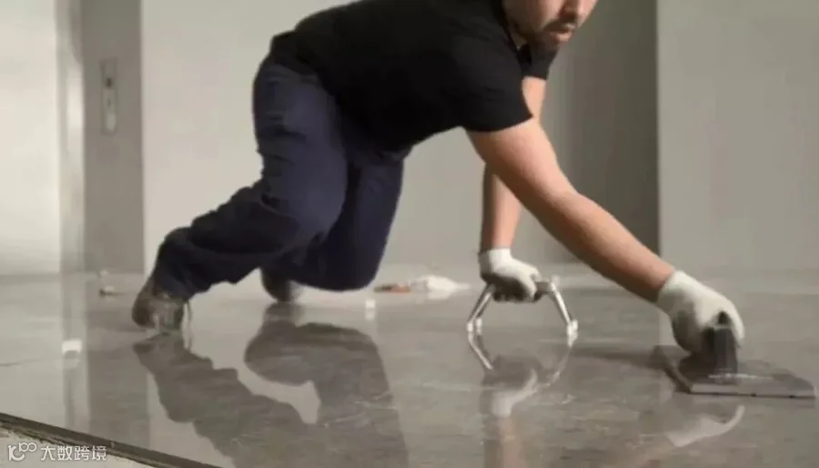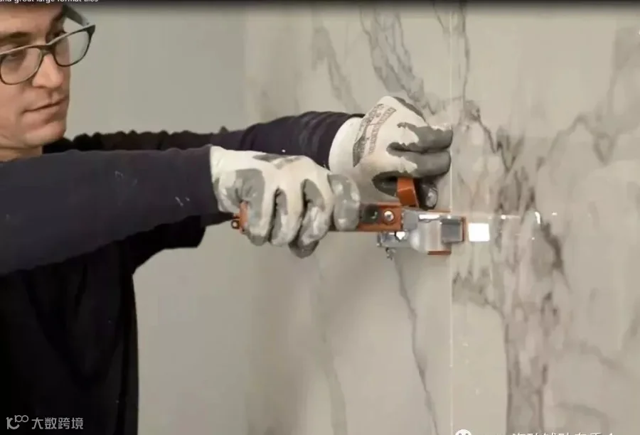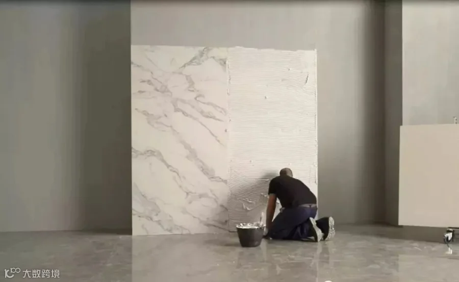 专业的粘结剂可保证铺贴的安全,防止空鼓脱落,并配合使用齿型抹刀将大板粘结剂均匀涂抹在基面和砖背。