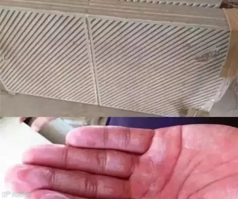 瓷砖或石材背面未清理干净,有灰尘或脱模剂等影响粘结强度的物质。
