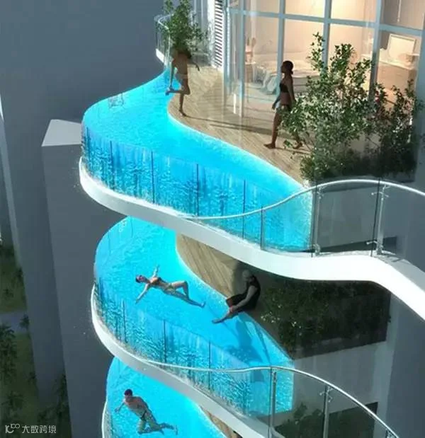 ▼“大玻璃缸”阳台泳池,一边舒心泡澡,一边欣赏风景
