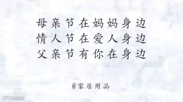 文案:母亲节在妈妈身边,情人节在爱人身边,父亲节有你在身边。
