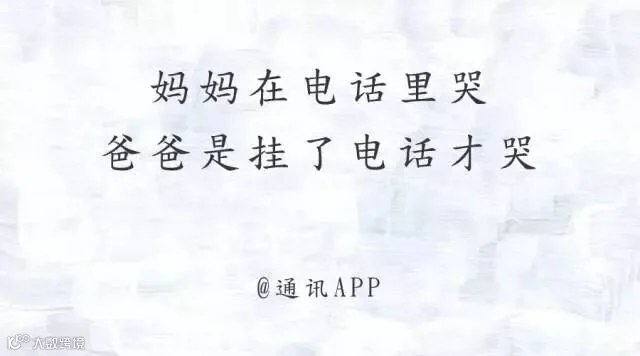 文案:妈妈在电话里哭,爸爸是挂了电话才哭。