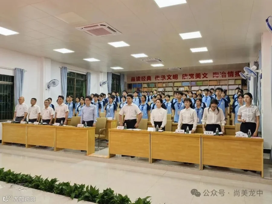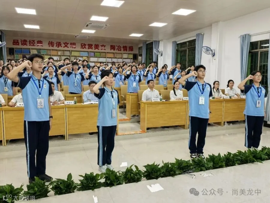 随后全体学生起立宣誓,铮铮誓言彰显了青春担当。他们用坚定的声音表达了自己为学校和同学服务的决心,也展现了龙中学子的精神风貌。这一宣誓仪式,不仅是对自己的承诺,也是对学校和同学的承诺,激励着他们在未来的学习和工作中不断努力,为实现学校的目标而奋斗。