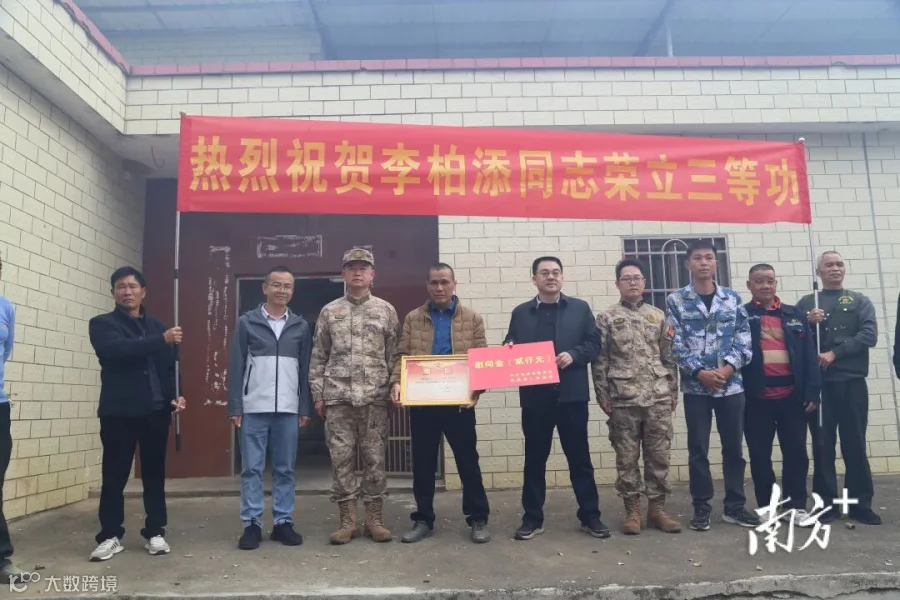 送喜报队伍先后来到现役军人何树田与何金龙家中,郑重地将立功喜报和慰问金交到军属手中,翁源县委常委、县人武部政治委员滕召林亲切地对军属说道:“恭喜你们!你们的孩子在部队立功,既是你们全家的骄傲,也是我们小镇村、我们翁源县的荣耀。感谢你们为国家、为部队培养了这么优秀的人才!”军属们手捧喜报,脸上洋溢着自豪与感动。