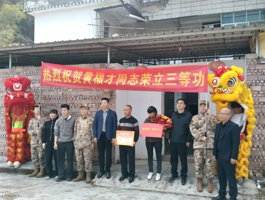 近日,翁源县集中开展为2025年度立功现役军人家庭送喜报活动。2月6日上午,县委常委、县人武部政治委员滕召林,副县长廖剑,县退役军人事务局、龙仙镇主要负责同志率队为我县两名荣立军功的现役军人家属送上立功喜报和慰问金,将党和政府的关心关怀送到军人军属心中。