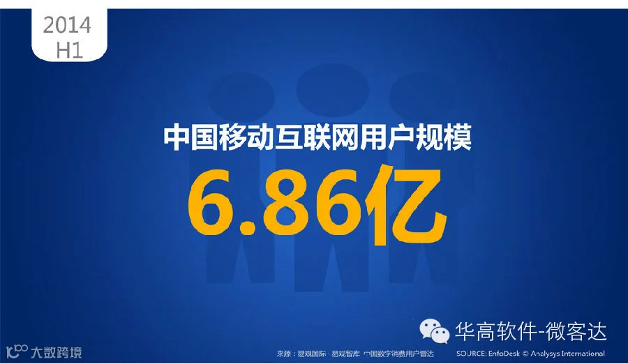 2014年7月1日,易观智库发布《中国移动互联网用户行为统计报告》。报告显示,截止2014年6月,中国移动互联网网民达到6.86亿。