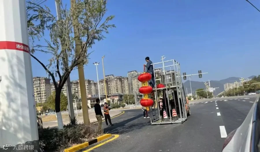 沿着龙仙大道一路前行,红彤彤的灯笼如跳动的火焰,从行政中心延伸至文体广场,在行道树间连成绵延的红色长廊。几位工作人员正踩着登高梯,小心翼翼地调整灯笼角度,确保每一串都整齐舒展。“咱们翁源人讲究年味,这些灯笼挂起来,市民心里才踏实。”