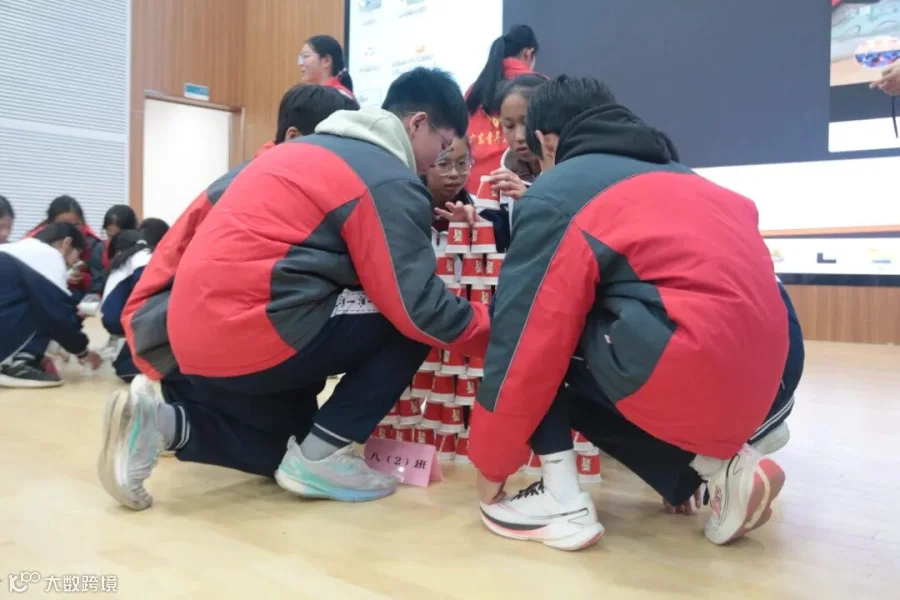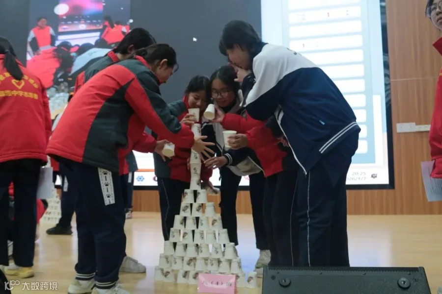 隔空取球考验团队的配合与耐心;纸杯塔极速搭建中,各组比拼速度与稳定性,看谁能搭得更高更稳;