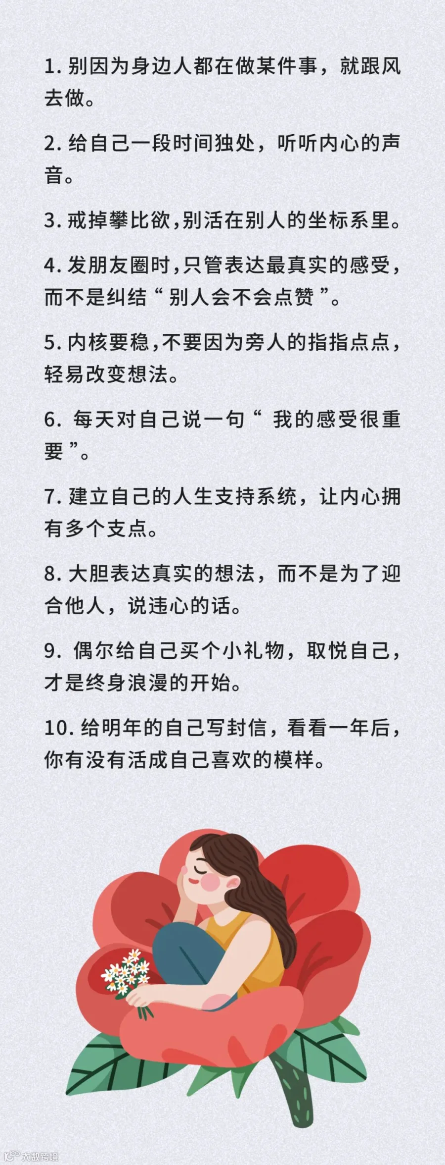 你不需要在自己的人生里,完成别人的期待清单;更没必要把外在的价值标准,生搬硬套在自己身上。