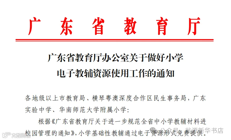 《广东省教育厅办公室关于做好小学电子教辅资源使用工作的通知》部分