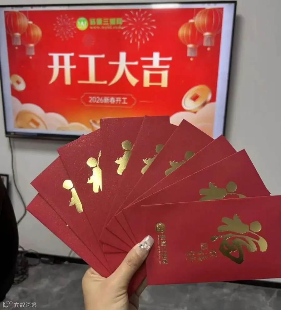 玩完三轮热闹的游戏,每个人都意犹未尽,公司将装满祝福的红色利是封递到员工手中。这不仅仅是一份开工红包,更是公司对大家过去一年辛勤付出的感谢,以及对新一年携手共进、再创佳绩的期许。