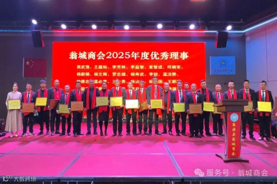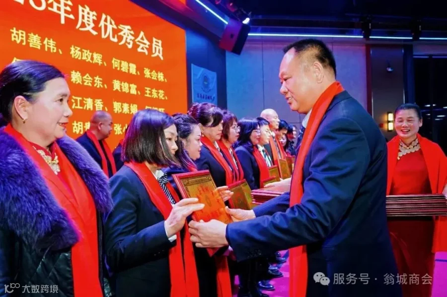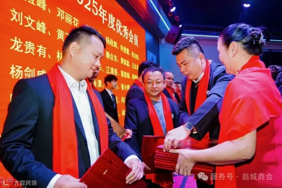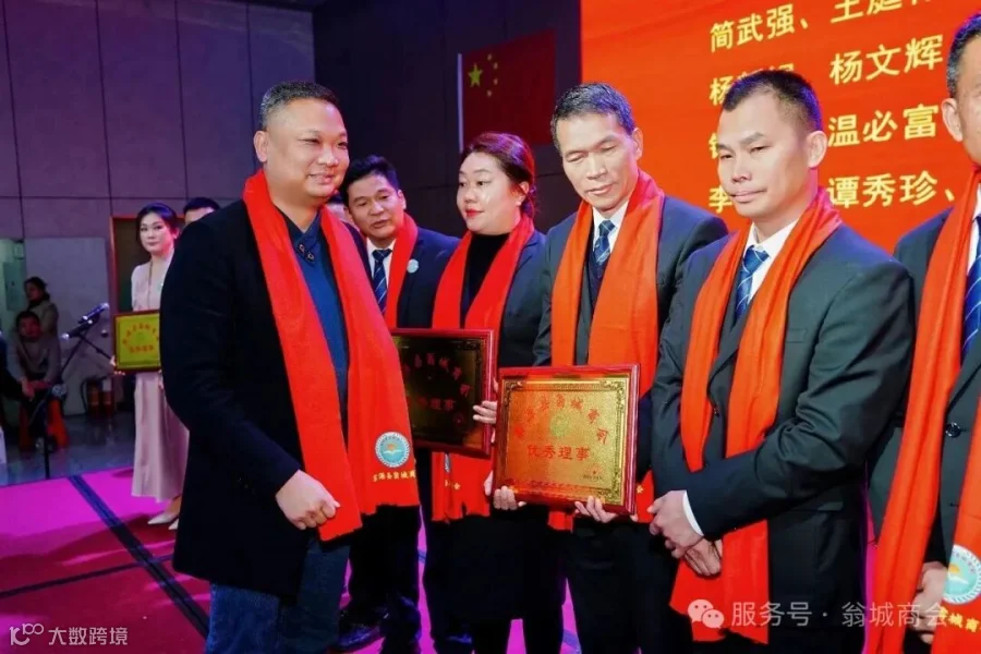 商会取得的成绩和2025双“四好”殊荣,离不开理事会的努力付出与奉献,经商会理事会讨论投票,评选出了翁城商会2025年度优秀理事23名。翁源县政协副主席、县工商联主席易昌荣,县委统战部副部长、工商联党组书记何小敏为他们颁发优秀理事牌匾。