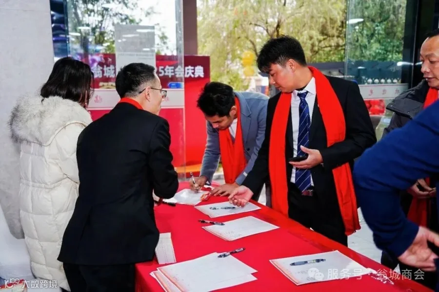 为了年会的顺利举办,商会成立了年会筹办委员会,组建多个由理事和会员构成的专项工作小组,大家分工协作、全力以赴投身各项筹办工作。会场布置小组在会场及周边悬挂横幅、红灯笼与彩色气球,让会场充满喜庆氛围;安保接送小组不畏严寒坚守岗位,在大门口及停车场有序引导宾客车辆进出停放,保障交通顺畅;迎宾小组的会员们以热情笑容和周到服务,引导嘉宾签到、在签名墙留影、有序就座,让每一位来宾感受到商会的温暖。此外,商会特意打造了专属会员企业展示走廊,数十块企业宣传展板整齐排列,既全方位展现了会员企业的实力与风采,更搭建起会员间互通有无、携手合作的重要桥梁。正是每一位参与者的无私付出与默契配合,让整场年会呈现出井然有序、喜庆热烈又温情满满的良好氛围。