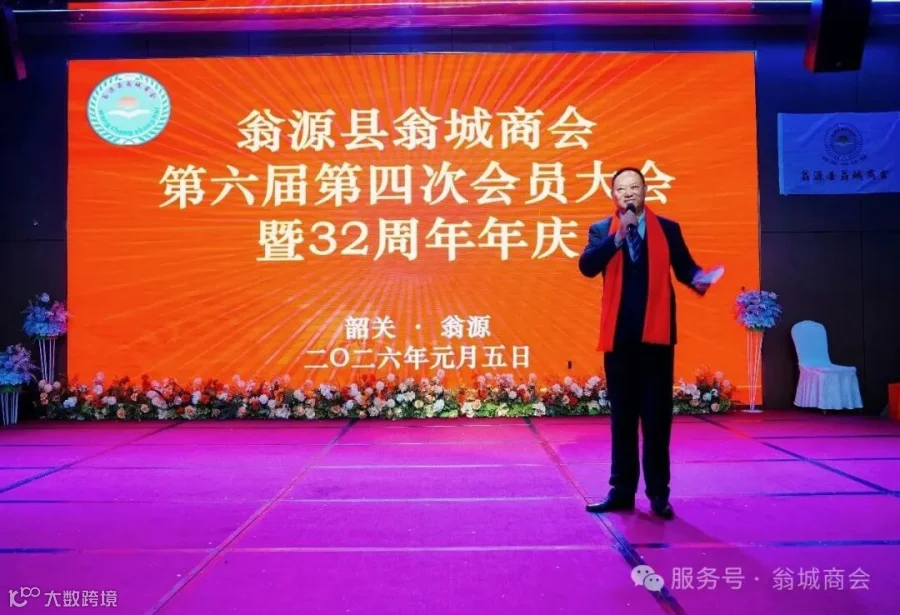 华灯璀璨,暖意融融,2026年1月5日,翁源县翁城商会第六届第四次会员大会暨2025年会庆典在翁城好运来大酒店隆重举行。本次盛会恰逢商会荣获“2025年全国‘四好’商会建设优秀案例”这一国家级荣誉,全体会员与领导嘉宾欢聚一堂,总结过往辉煌、表彰先进典型、共话未来发展,共同庆祝翁城商会成立32周年。