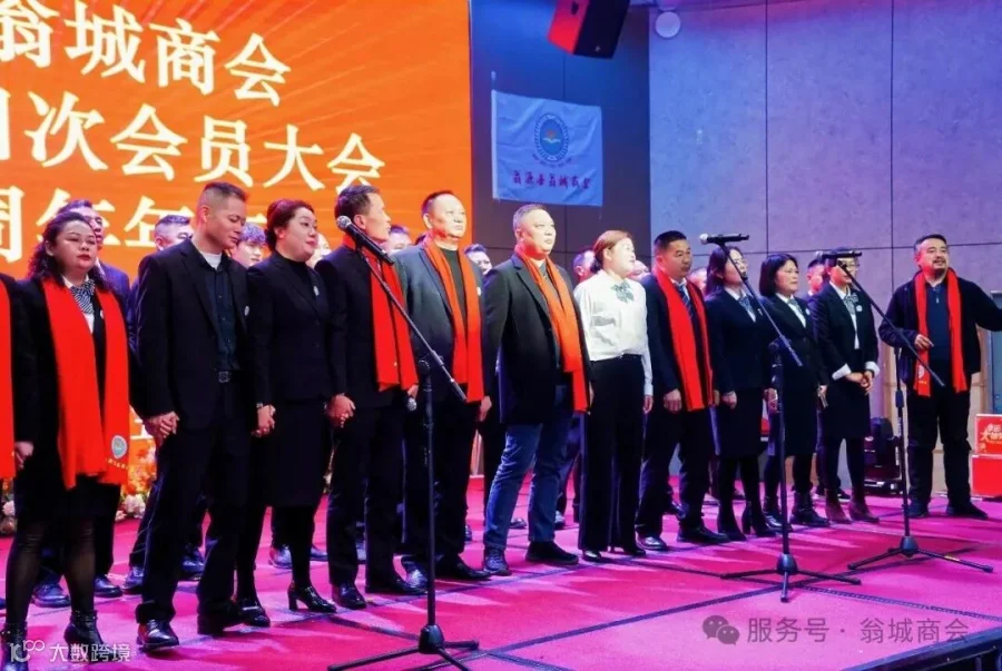 随着领导、嘉宾和会员上台,一起高歌大合唱《明天会更好》,翁源县翁城商会2025年会缓缓落下帷幕。