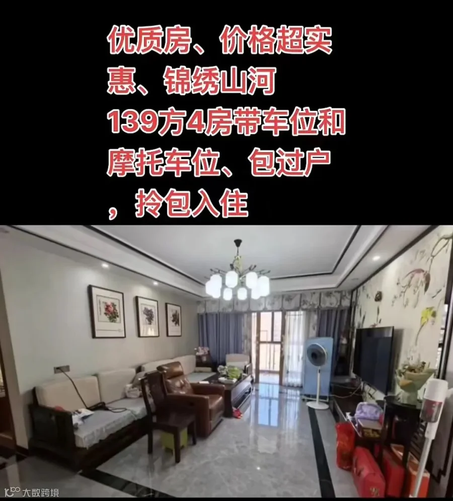 惊喜价:锦绣山河、优质房、价格超实惠,包过户139方4房,带车位和摩托车位靓楼层 拎包入住。