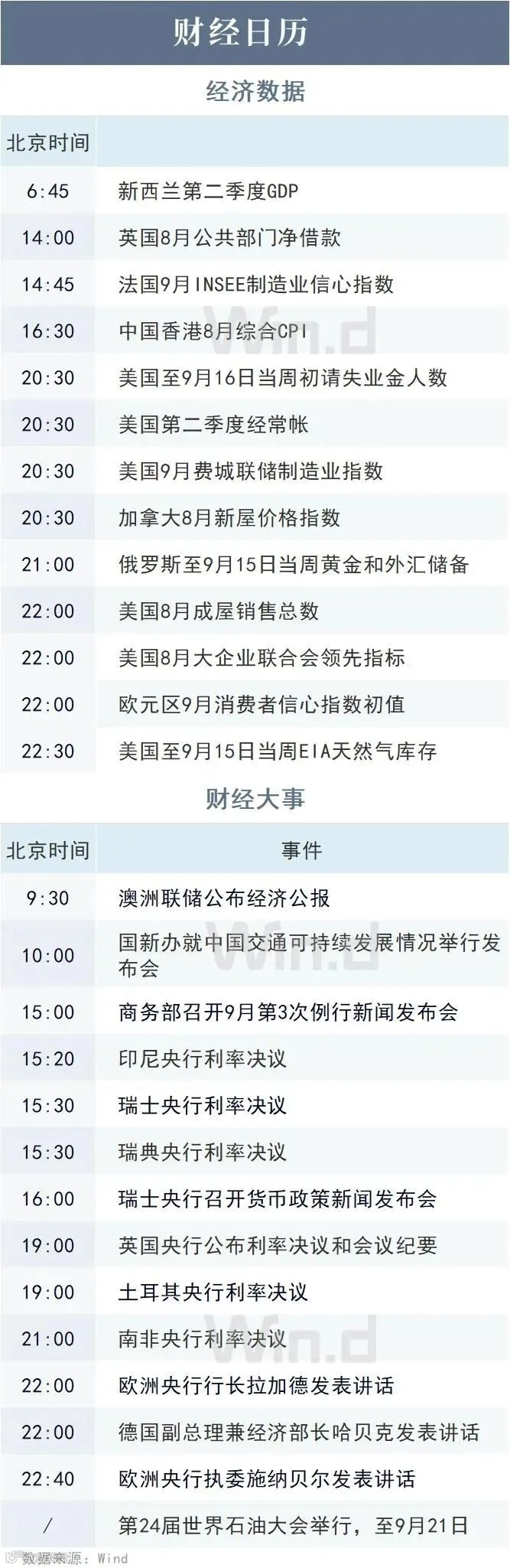【1】央行:9月,1年期LPR报3.45%,5年期以上LPR报4.2%,两个品种LPR均与上月持平。