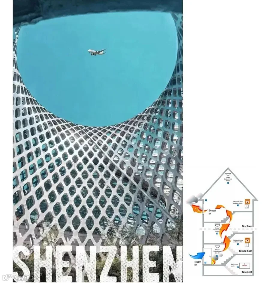 深圳地王大厦高69层,总高度383.95米,实高324.8米,主题性观光项目“深港之窗”,坐落在巍峨挺拔的地王大厦顶层,是亚洲第一个高层主题性观光游览项目。在此可以俯览深圳市容,远眺香港市容。许多游客和打卡爱好者身在大厦中,可从高处看到深圳城市景观。通过德国格屋上悬外开窗的解决方案,地王大厦实现了通风和景观的便捷使用体验。