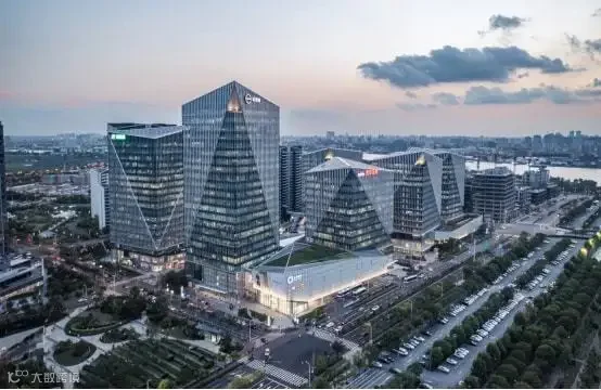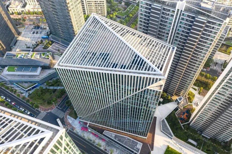 项目极具特色的几何造型建筑是由世界著名建筑事务所KPF创始人之一威廉·佩特森(William Pedersen)亲自操刀设计,建筑整体呈水晶状集合造型,线条干净利落。