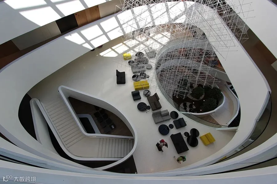 为所有房间提供绝佳的视野;公共设施围绕中心垂直大厅布局。主厅连接所有楼层的公共空间,形成了具有令人瞩目的高度和规模的中空体量,在这里可以看到酒店内外的有趣景象。
