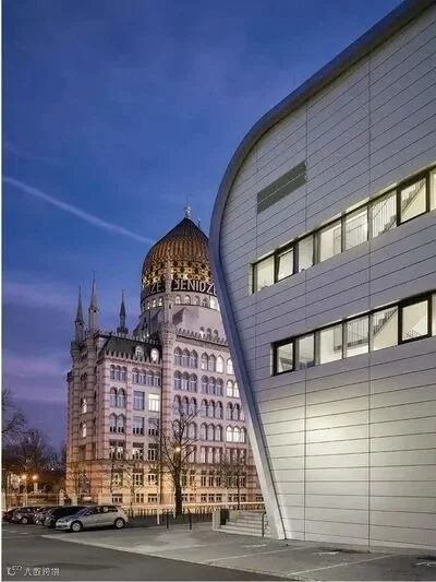 德累斯顿的一些景区往往能看到古迹和新建筑共存的现状,比如我们今天要分享的这个案例——德累斯顿多功能体育馆,它于2017年修整落成开放,体育馆的隔壁便是1908年落成的叶尼则卷烟厂旧址(如今被用作行政大楼)。
